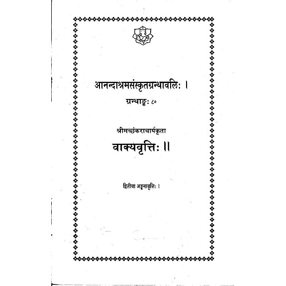 Vakyavritti (Anandashram Sanskrit Series No. 80)-