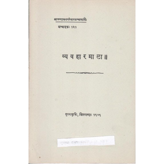Vyavaharmala  (Anandashram Sanskrit Series No.121)-